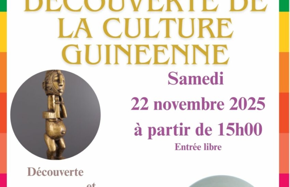 Au programme : des dégustations de plats traditionnels 🍲, une exposition sur la culture et l’art de la Guinée 🖼️, ainsi que des rencontres pour échanger sur cette culture vibrante 🗣️. Cet événement est une belle occasion de s’immerger dans les traditions guinéennes, tout en partageant un moment convivial et enrichissant avec la communauté locale 🌍.