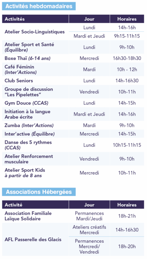 Elle propose des services et des activités adaptées aux besoins exprimés par les habitants. Ainsi, elle accompagne leurs projets individuels et collectifs et soutient le renforcement de leur pouvoir d’agir sur les questions de société qui concernent leur territoire.