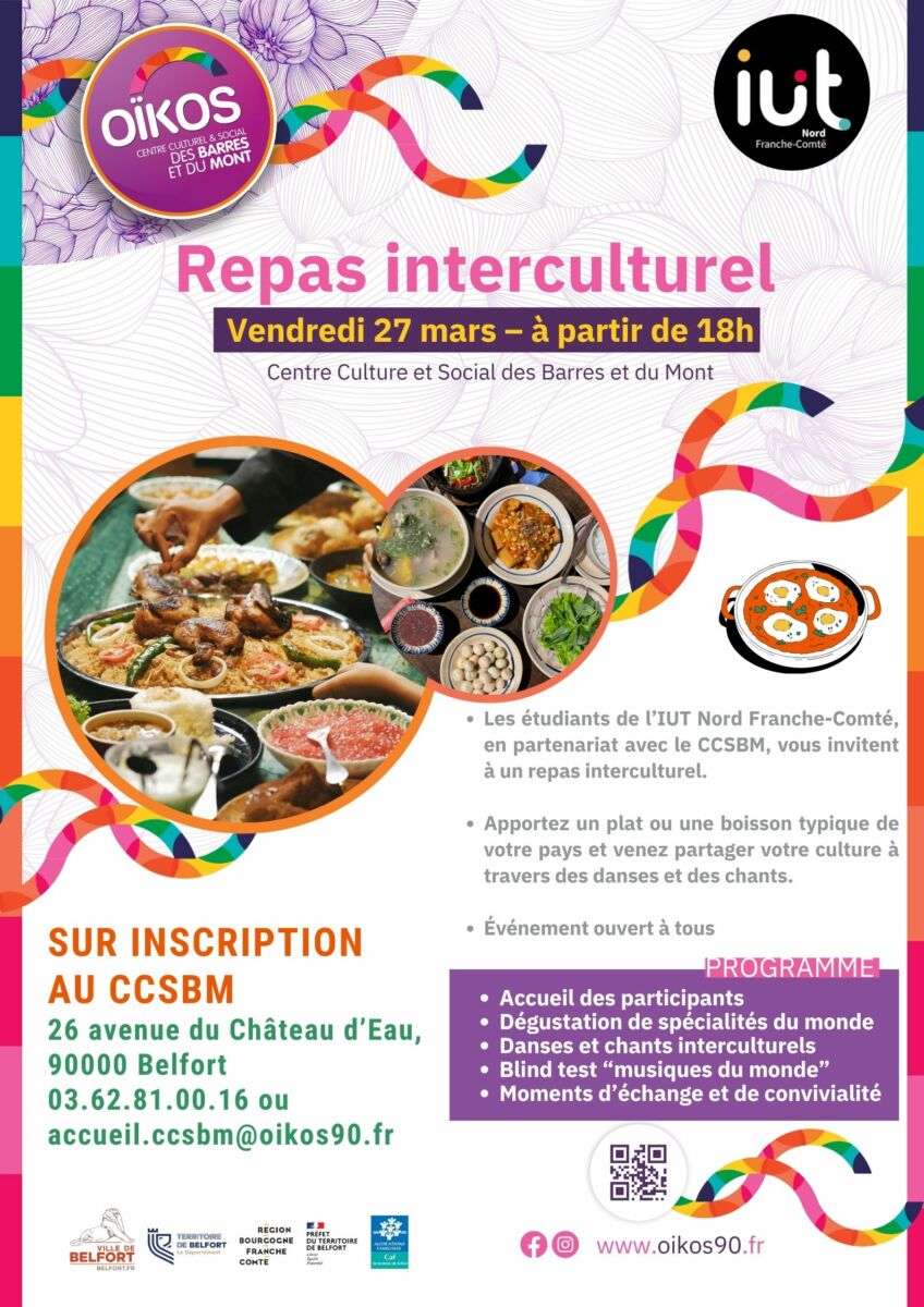 Les étudiants de l’IUT Nord Franche-Comté, en partenariat avec le Centre Culturel et Social des Barres et du Mont (CCSBM), vous invitent à un repas interculturel convivial et festif.